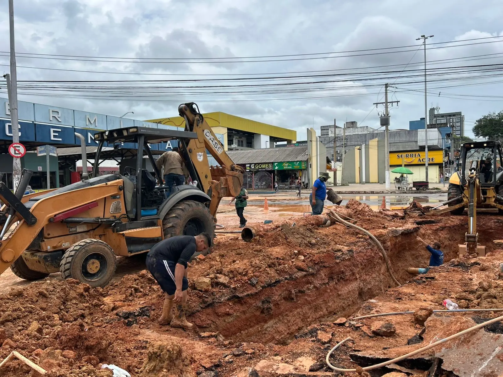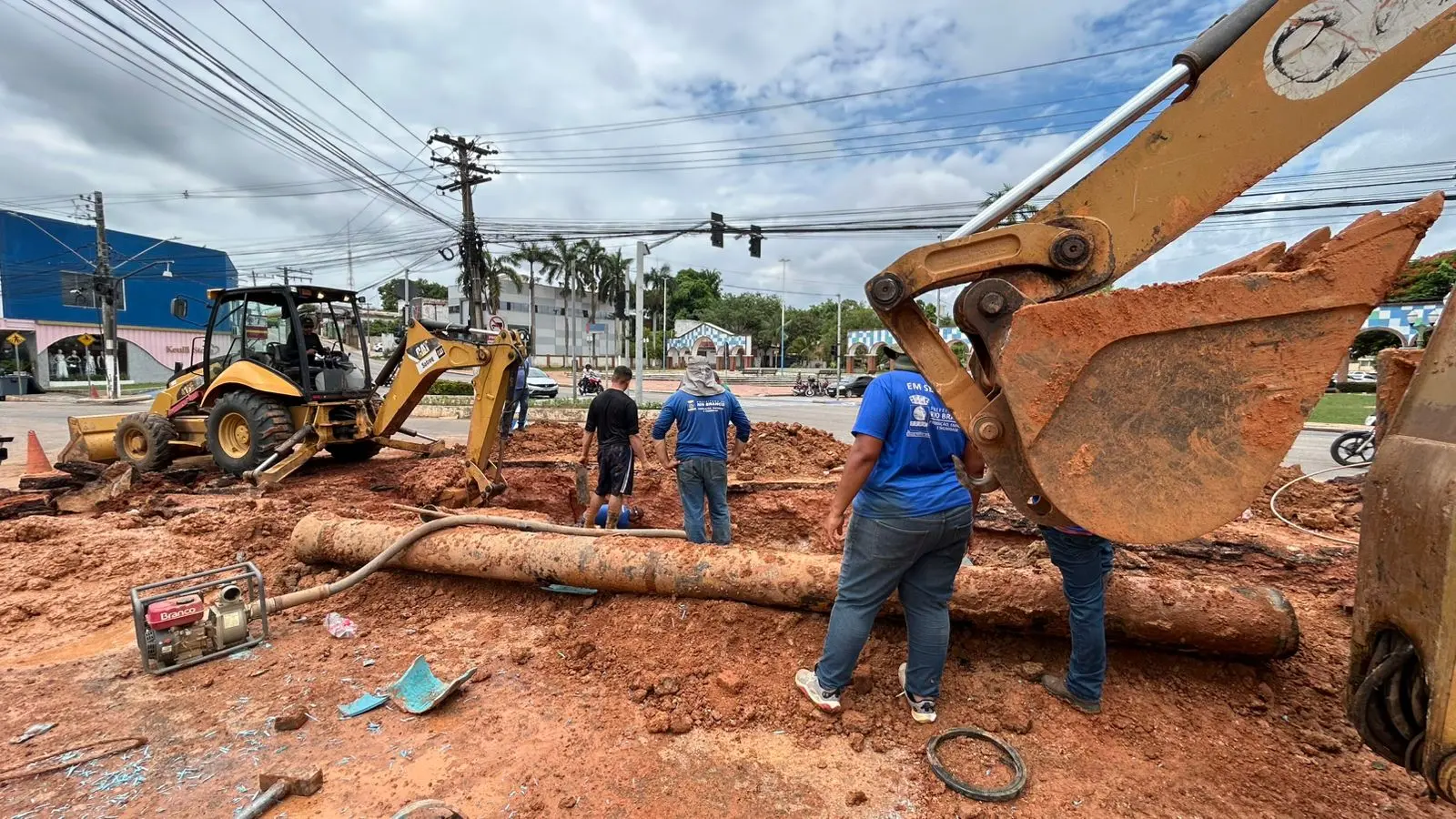 “Ontem trabalhamos até meia-noite e retomamos cedo hoje. Se chover forte, pode atrasar, porque precisamos garantir uma compactação adequada da vala. Essa área recebe muita carga de veículos devido ao terminal, e um aterro mal feito pode causar novo afundamento e romper a rede novamente”, destacou.
