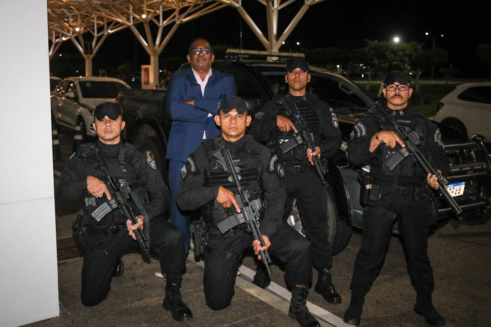 Pelotão do Bope do Acre prestigia chegada do caveira do Rio de Janeiro em Rio Branco. Foto: Ascom/Segov