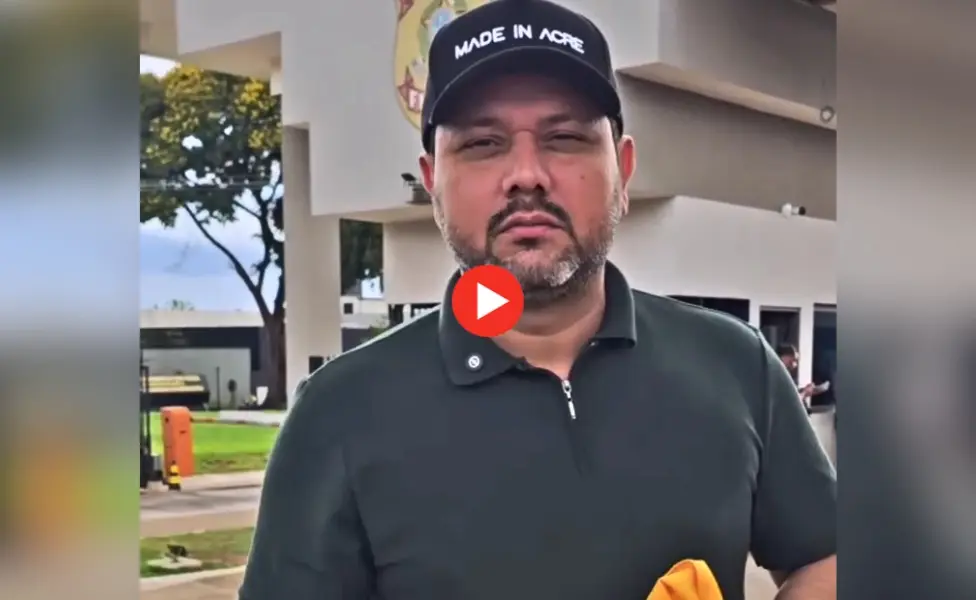 O secretário de Assistência Social do Acre e líder da direita estadual, João Marcos Luz, está em frente à Superintendência da Polícia Federal (PF) em Brasília, onde o ex-presidente Jair Bolsonaro cumpre pena por liderar uma organização criminosa em uma tentativa de golpe de Estado, após ser derrotado nas eleições para Luiz Inácio Lula da Silva.
