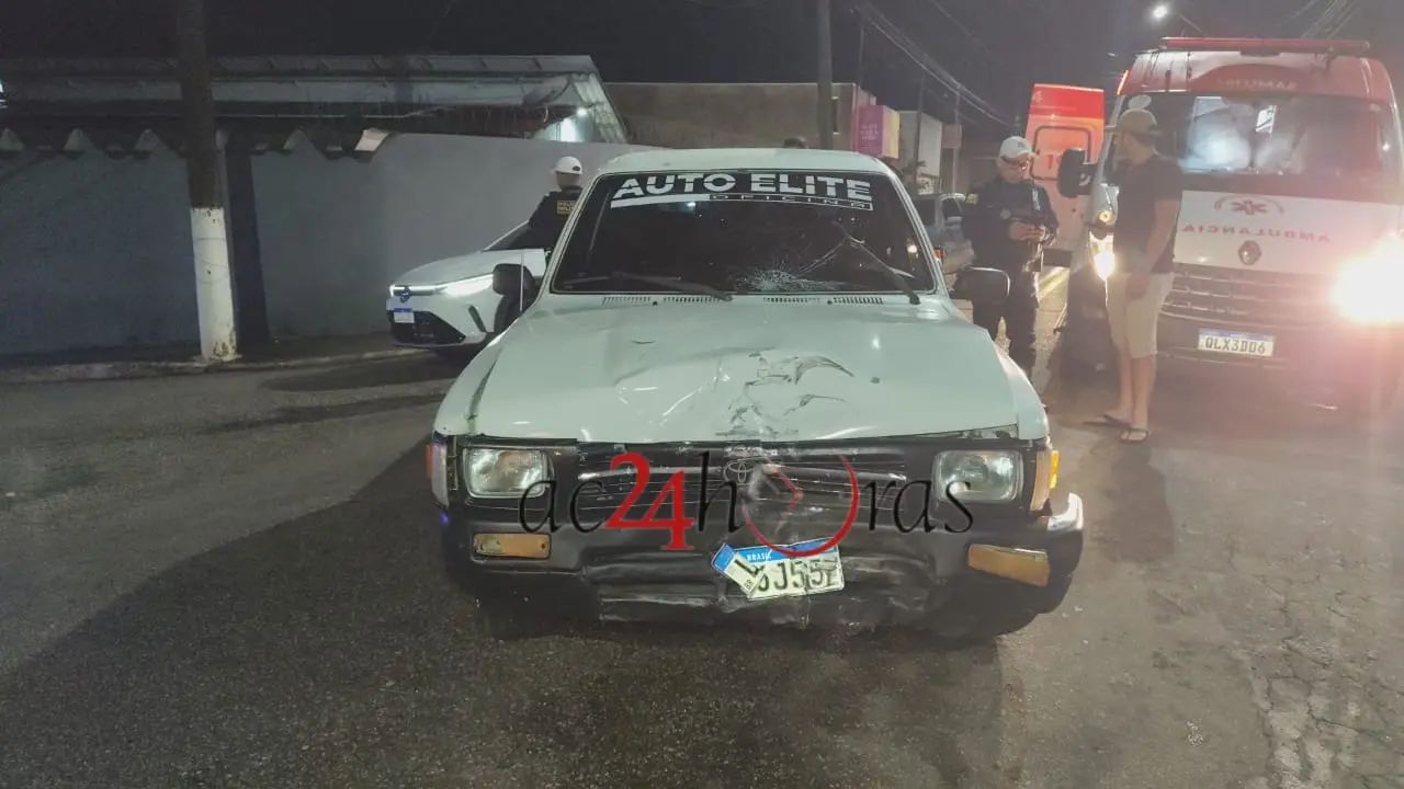 Um acidente envolvendo uma caminhonete e uma motocicleta deixou Shayd Ramon Lima de Souza, de 24 anos, ferido e resultou no incêndio de sua moto na noite deste sábado, 6, na Rua Isaura Parente, no bairro Estação Experimental, em Rio Branco.