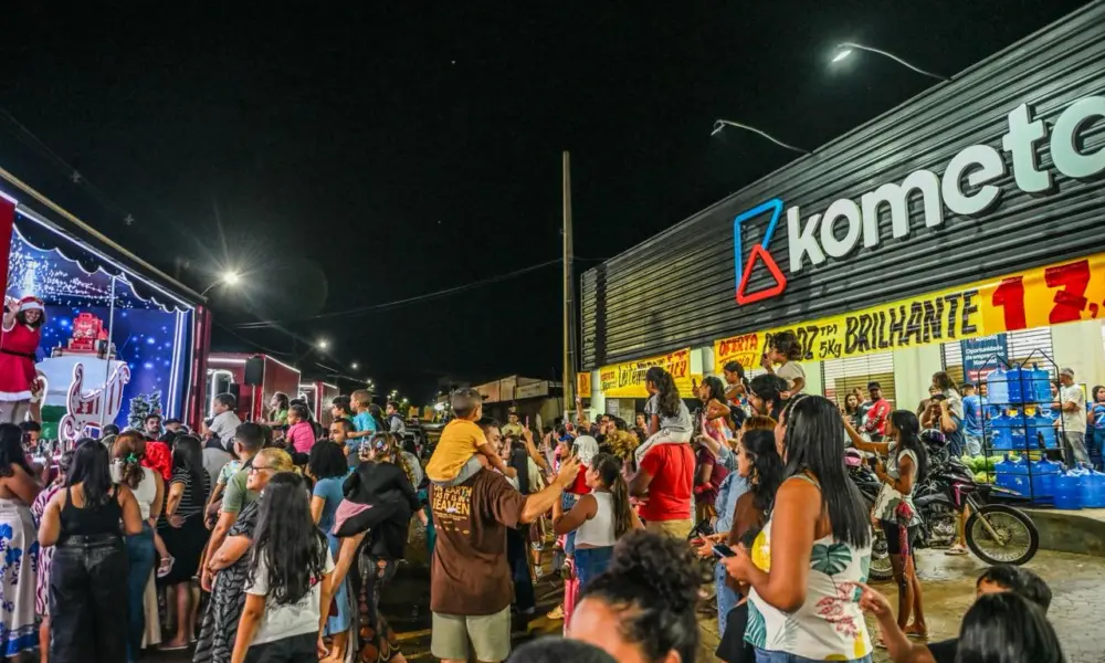 Dezenas de pessoas, entre elas muitas crianças de todas as idades e também adultos, aguardavam ansiosas a Caravana de Natal da Coca-Cola no bairro Calafate, em frente ao supermercado Kometa, onde ocorreu a primeira parada do comboio.