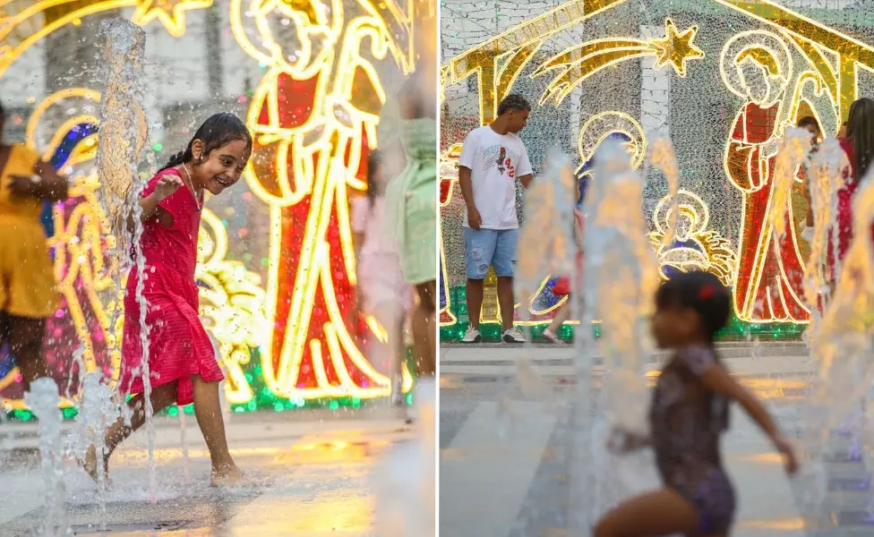 No espaço, diversas famílias chegaram mais cedo para aproveitar a área com tranquilidade e registrar fotos da fonte e de toda decoração antes do acender oficial das luzes.