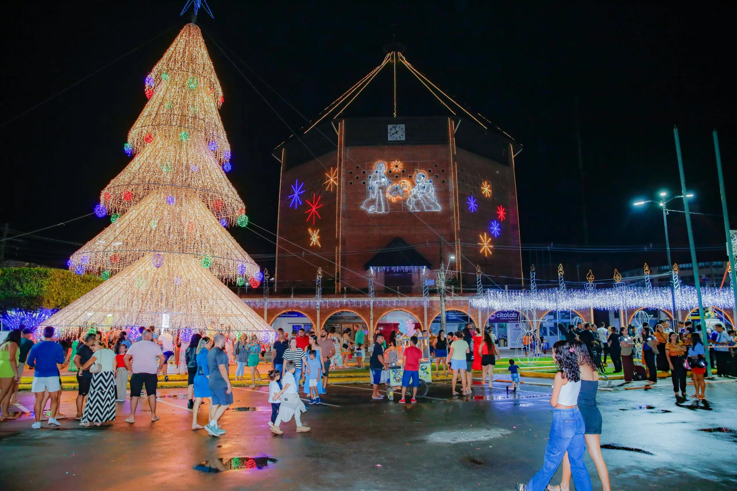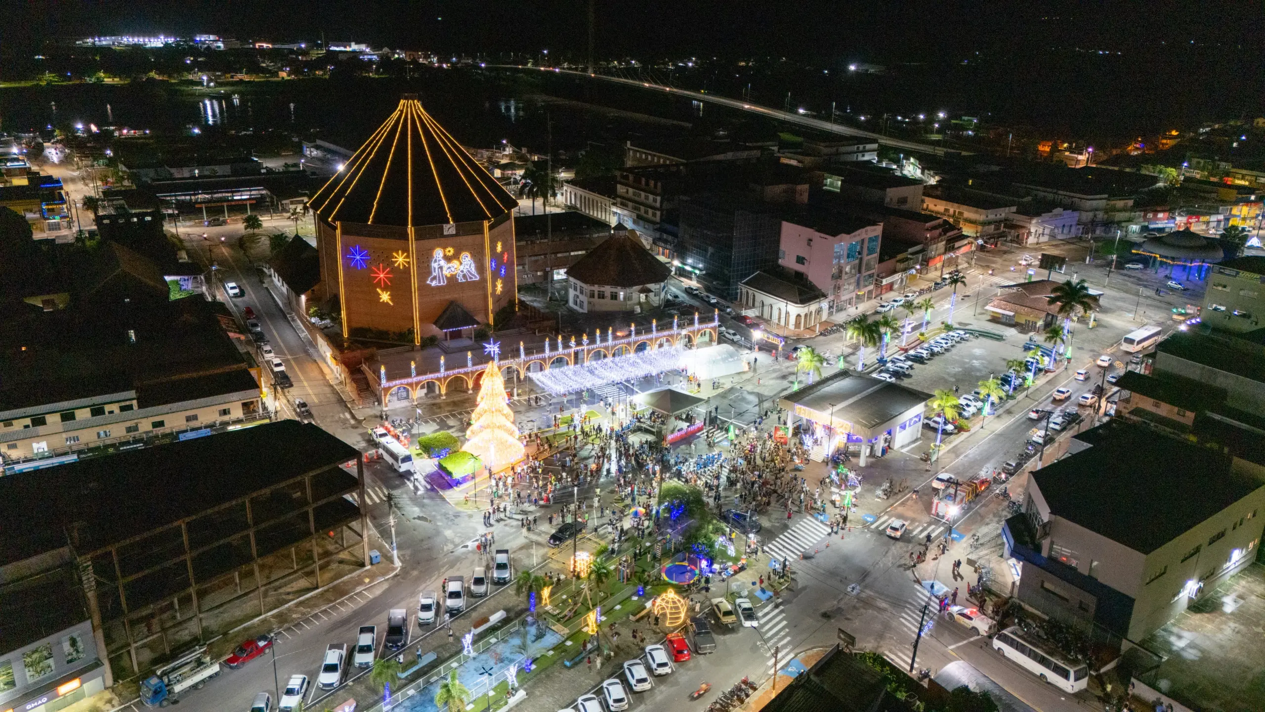 Além do Centro, as luzes de Natal também estão em outros pontos da cidade, como o complexo esportivo do bairro Aeroporto Velho e na rotatória do 61° BIS.