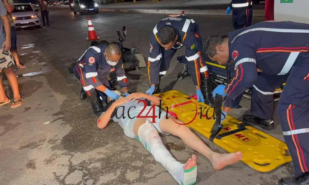 Daniel de Souza, de 20 anos, militar do Exército, ficou ferido após um acidente de trânsito envolvendo um carro e a motocicleta que conduzia, na noite desse sábado (13), na Avenida Ceará, no bairro Doca Furtado, em Rio Branco. Ele sofreu fratura exposta na perna direita.