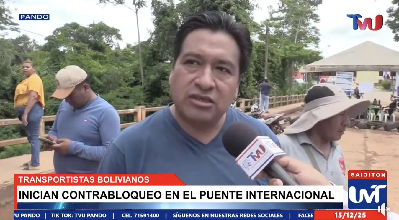 Transportadores do departamento de Pando, na Bolívia, iniciaram na manhã desta segunda-feira (15) um contrabloqueio na ponte internacional que liga o país ao Brasil. A medida foi adotada como reação aos prejuízos acumulados após seis dias de bloqueio realizados por estudantes brasileiros. As informações são da TVU Pando.