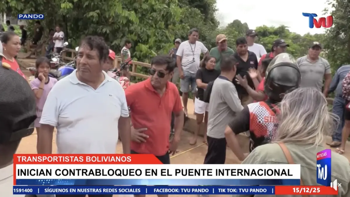 Transportadores do departamento de Pando, na Bolívia, iniciaram na manhã desta segunda-feira (15) um contrabloqueio na ponte internacional que liga o país ao Brasil. A medida foi adotada como reação aos prejuízos acumulados após seis dias de bloqueio realizados por estudantes brasileiros. As informações são da TVU Pando.