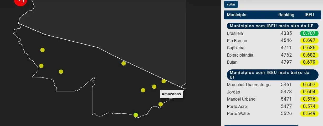 Um levantamento realizado pelo Observatório das Metrópoles, aponta que o município de Brasiléia, no Acre, alcançou o melhor desempenho no Índice de Bem-Estar Urbano Global (IBEU), figurando entre os cinco municípios acreanos com maior pontuação no indicador, com IBEU de 0,707, o mais elevado do estado.