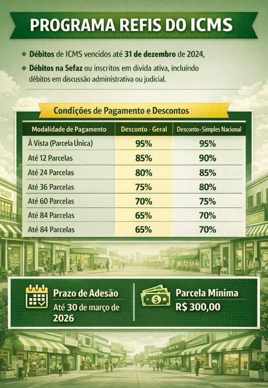 O prazo de adesão ao Refis será prorrogado até 30 de março de 2026, ampliando a oportunidade para que contribuintes possam aderir ao programa. Podem ser incluídos débitos vencidos junto à Secretaria de Estado da Fazenda (Sefaz) ou inscritos em dívida ativa, além de débitos em discussão administrativa ou judicial, inclusive aqueles que já foram objeto de parcelamentos anteriores.