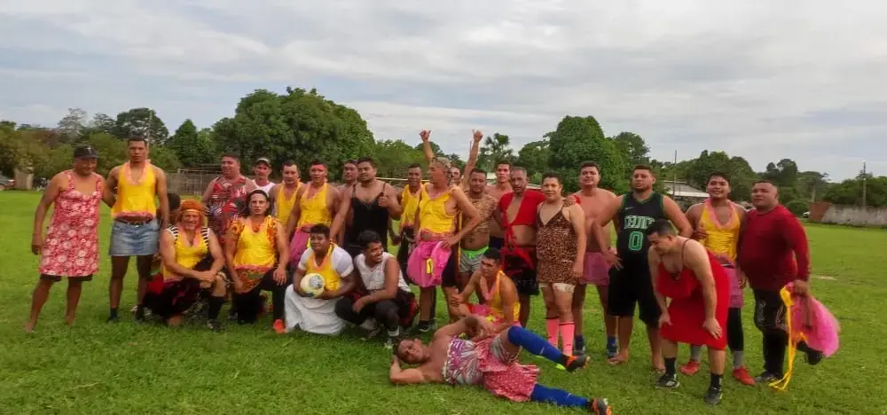 Um grupo de ativistas culturais de Porto Acre (AC) mantém há anos a tradicional partida de futebol com homens usando roupas femininas.