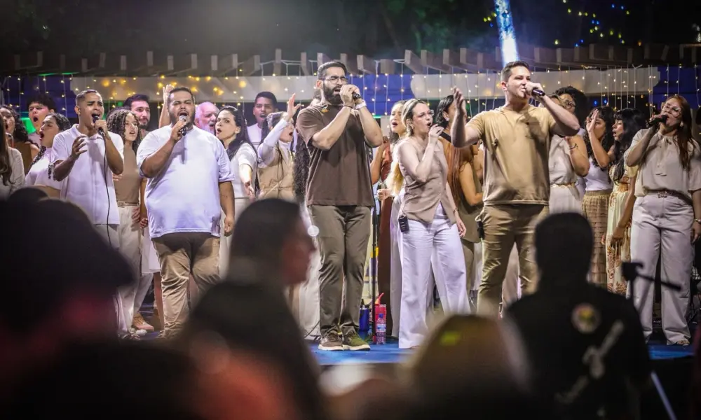 O coral da Igreja Batista do Bosque (IBB), em Rio Branco (AC), realizou uma apresentação musical na Praça da Revolução, na noite deste sábado, 20, para receber o público que saiu de casa para prestigiar o show de drones, realizado pela prefeitura da capital acreana.