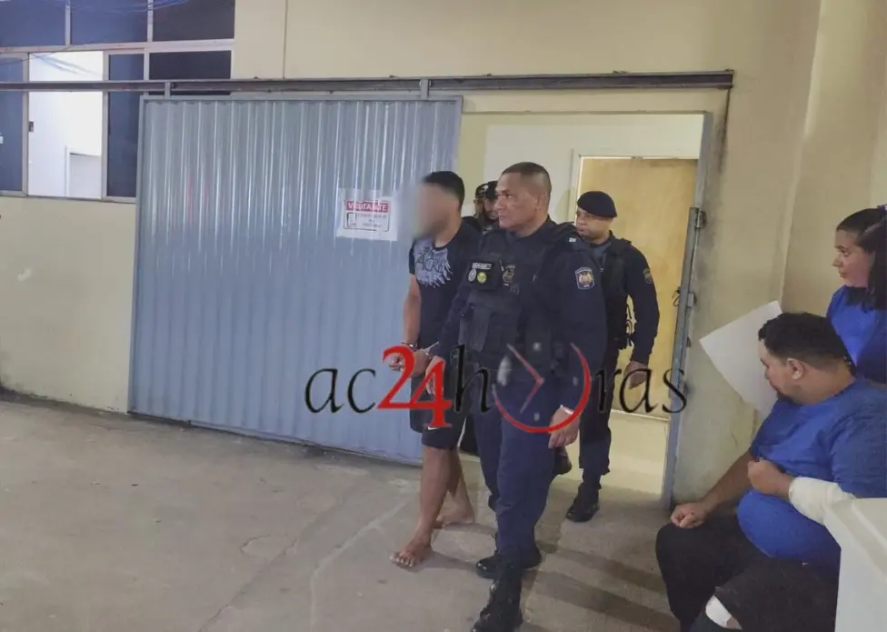 Leandro Araújo da Silva, de 32 anos, foi preso na noite de sexta-feira (19) logo após receber alta médica do Pronto-Socorro de Rio Branco. Ele estava entre os feridos por disparos de arma de fogo durante uma confusão registrada dentro da unidade de saúde.