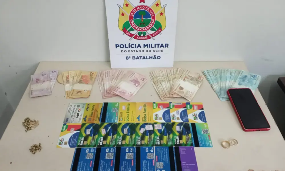 Na verificação, os militares apreenderam mais de 20 cartões bancários, comprovantes de saque, dinheiro em espécie e objetos pessoais. De acordo com a Polícia Militar, os indícios apontam para um possível esquema de usura, no qual cartões de terceiros seriam retidos como forma de garantia para empréstimos de dinheiro com cobrança de juros acima do permitido por lei.