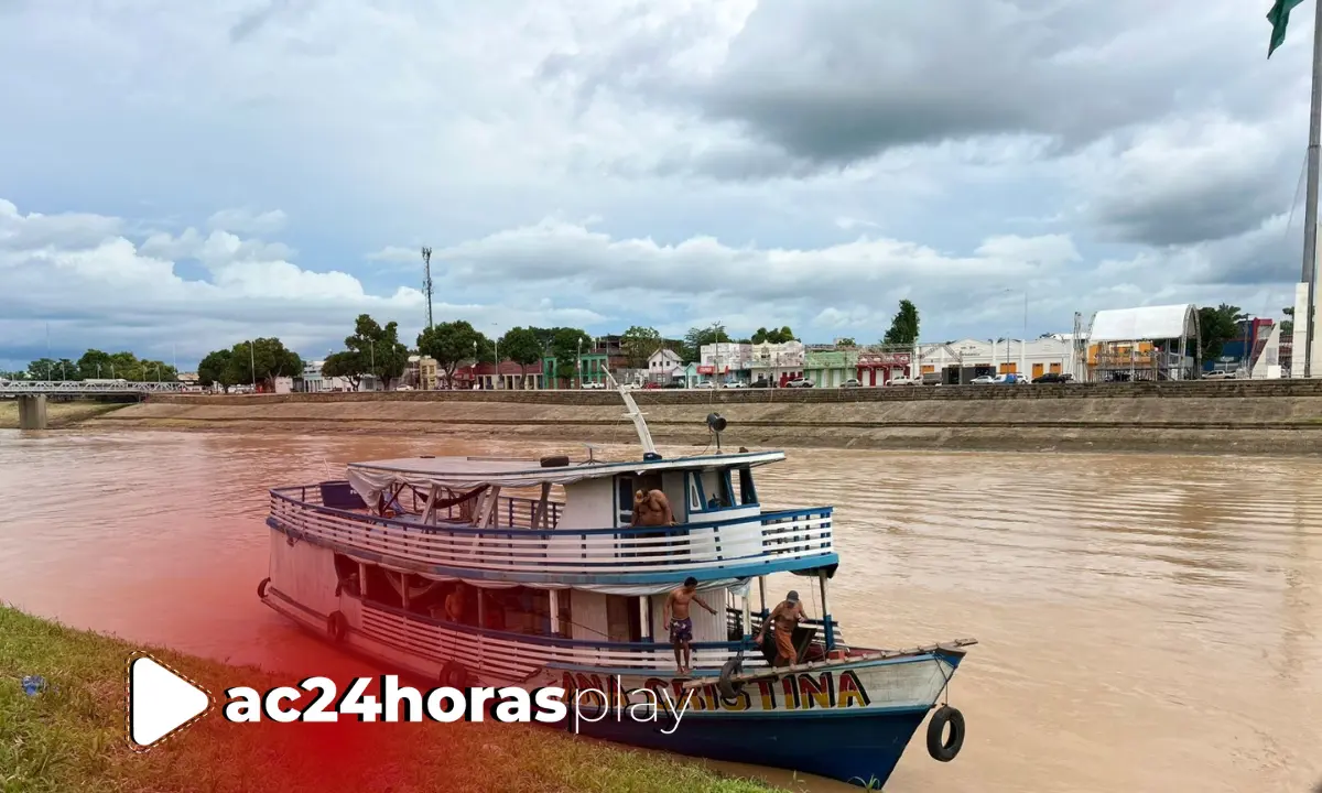 A embarcação Ana Cristina ancorou na Praia da Base trazendo tripulantes e mercadorias de Pauini (AM). O freteiro Agnélo Araújo, conhecido como Nene, destacou as dificuldades da navegação, a importância do transporte fluvial e relembrou o período de maior movimento no Rio Acre.