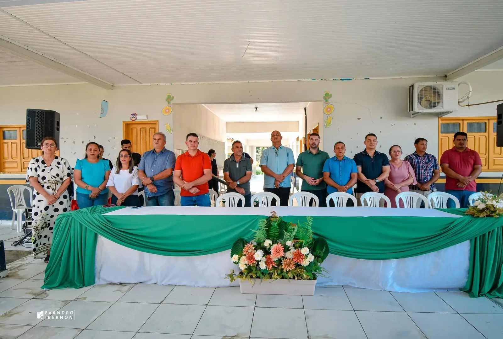 A cerimônia de assinatura da Ordem de Serviço, nesta terça-feira, 23,contou com a presença de autoridades municipais, comunidade escolar, vereadores, secretários, do deputado federal Zezinho Barbary, do deputado estadual Nicolau Júnior, do vice-prefeito Andinho Lima e do ex-prefeito Isaac Lima.