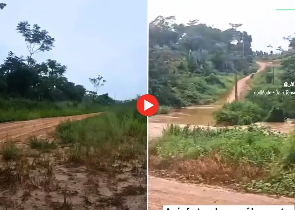 As fortes chuvas registradas no Acre nesta sexta-feira (26) provocaram o transbordamento do igarapé Xiburema, na zona rural de Sena Madureira. O aumento rápido do nível da água fez com que a correnteza avançasse sobre o ramal, cobrindo um trecho da estrada e a ponte que garantem acesso à região.