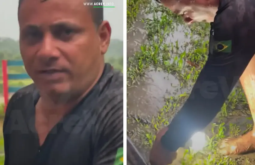 O secretário municipal de Produção e Sustentabilidade de Jordão, interior do Acre, Eudes Mendes, encontrou um peixe-elétrico, conhecido como poraquê, em uma área alagada da zona rural da cidade e decidiu testar a fama do peixe conhecido por gerar choque elétrico.