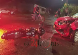 Um acidente de trânsito envolvendo um carro e uma motocicleta deixou Diego Meneses de Moura, de 18 anos, gravemente ferido na noite deste sábado, 27,