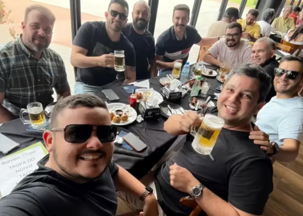 Nas imagens, o grupo aparece animado dentro do veículo enquanto percorre ao menos quatro bares localizados em pontos distintos da cidade. A proposta foi tornar a despedida um momento marcante para o noivo, reunindo amigos e visitas a diferentes estabelecimentos ao longo do trajeto.
