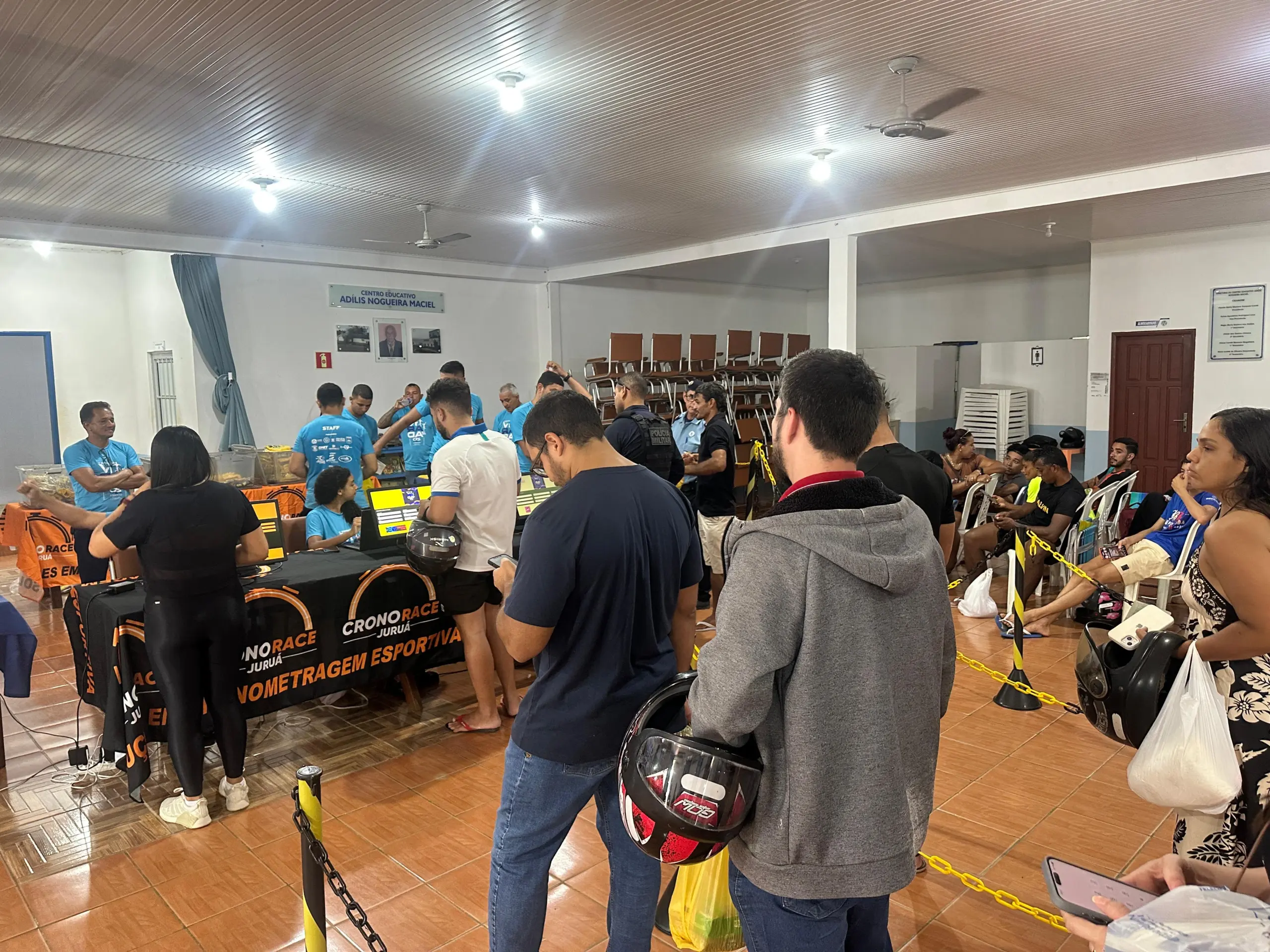 Os participantes da 5ª Corrida da Virada José Oliveira da Conceição, em Cruzeiro do Sul, receberam da prefeitura municipal, nesta terça-feira, 30, no auditório do Ceanom, seus kits para o evento. Cada um entregou 2 quilos de alimentos não perecíveis e recebeu o kit com um carbogel, camiseta e o número do corredor. A corrida, com percursos de 10 e 5 quilômetros, terá largada e chegada na frente da Catedral Nossa Senhora da Glória, nesta quarta-feira, 31, com início às 6 horas da manhã.