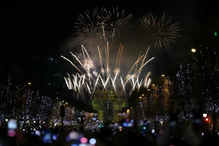 Celebração da chegada de 2026 no Arco do Triunfo, em ParisImagem: 31.dez.25 – Alain Jocard/ AFP