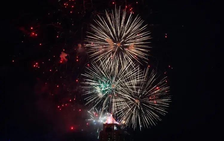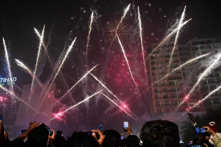 Show de fogos marcam celebração do Ano-Novo em Lahore, no PaquistãoImagem: 31.dez.25 – Arif Ali/AFP