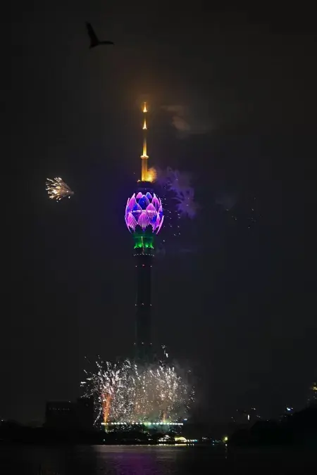 Fogos na Lotus Tower em Colombo, capital do Sri LankaImagem: Ishara S. Kodikara/AFP