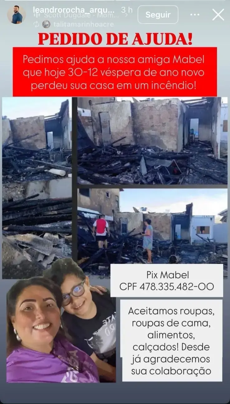Após um incêndio de grandes proporções destruir completamente uma residência na rua Atlético Grêmio Sampaio, no bairro José Augusto, em Rio Branco, moradores e internautas passaram a se mobilizar nas redes sociais para prestar ajuda à família atingida. O caso ocorreu na tarde desta terça-feira (30), na véspera do Ano-Novo.