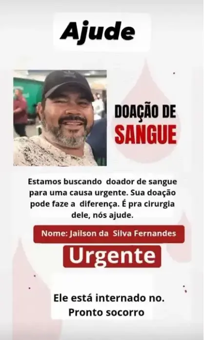 Jailson da Silva Fernandes, jornalista e repórter cinematográfico com atuação reconhecida na imprensa acreana, está internado no Pronto-Socorro de Rio Branco e aguarda a realização de uma cirurgia de emergência. Diante da necessidade do procedimento, familiares e colegas de profissão iniciaram uma mobilização para reforçar o estoque de sangue destinado ao atendimento.