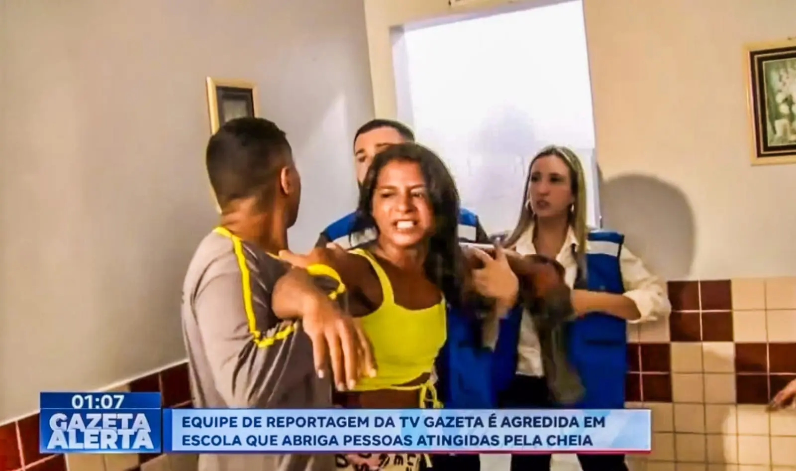 As agressões ocorreram durante o trabalho de apuração sobre a retirada das famílias que estavam abrigadas na escola e que começavam a retornar às suas casas após a redução do nível do rio. O episódio foi exibido no programa Gazeta Alerta, que apresentou imagens do momento de tensão enfrentado pelos profissionais da emissora.