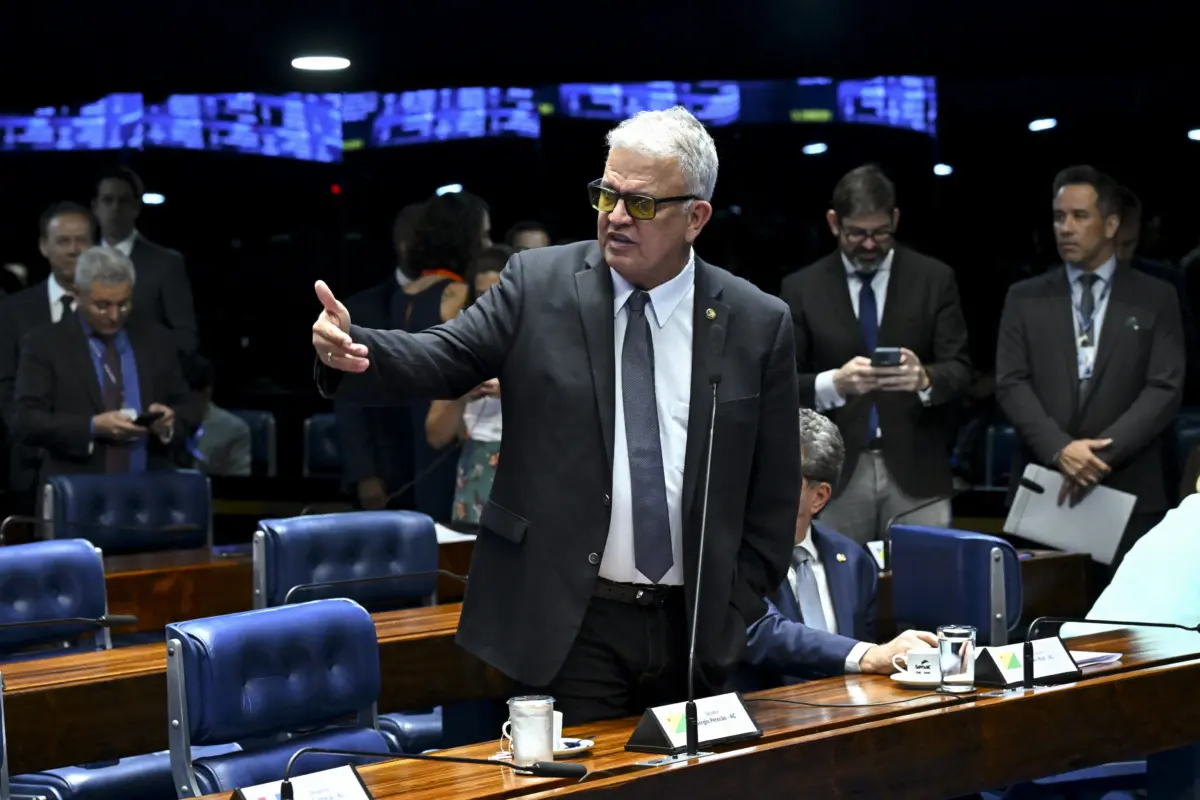 Plenário do Senado Federal durante sessão deliberativa ordinária. Ordem do dia. Na pauta, o PL 2.133/2023, que altera a Lei nº 14.133, de 1º de abril de 2021 (Lei de Licitações e Contratos Administrativos) para prever o uso do Sistema de Compras Expressas (Sicx) na contratação de bens e serviços comuns padronizados. Em pronunciamento, à bancada, senador Sérgio Petecão (PSD-AC). Foto: Jefferson Rudy/Agência Senado