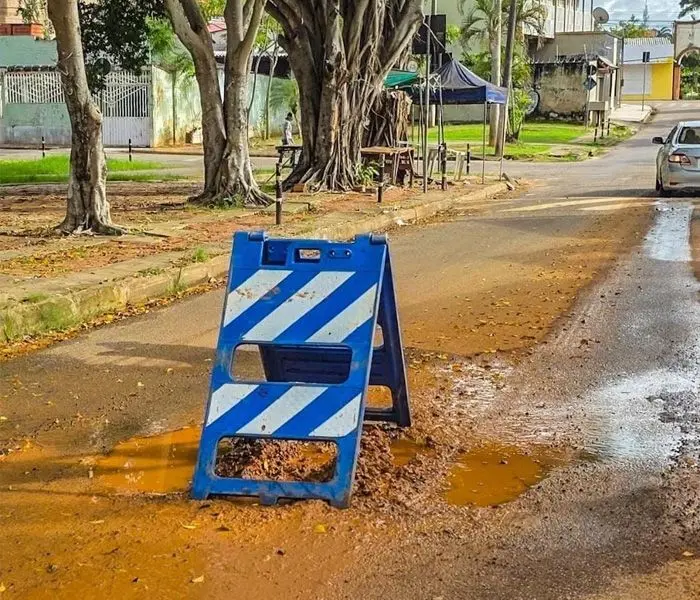 Moradores de Rio Branco têm reclamado que 2026 iniciou com a volta de uma cultura quase cômica na infraestrutura do município: a sinalização de buracos e o esquecimento do conserto deles. Ele está há pelo menos dois dias jorrando água, na rua Machado de Assis, no Castelo Branco. Sinalizado, mas não consertado.