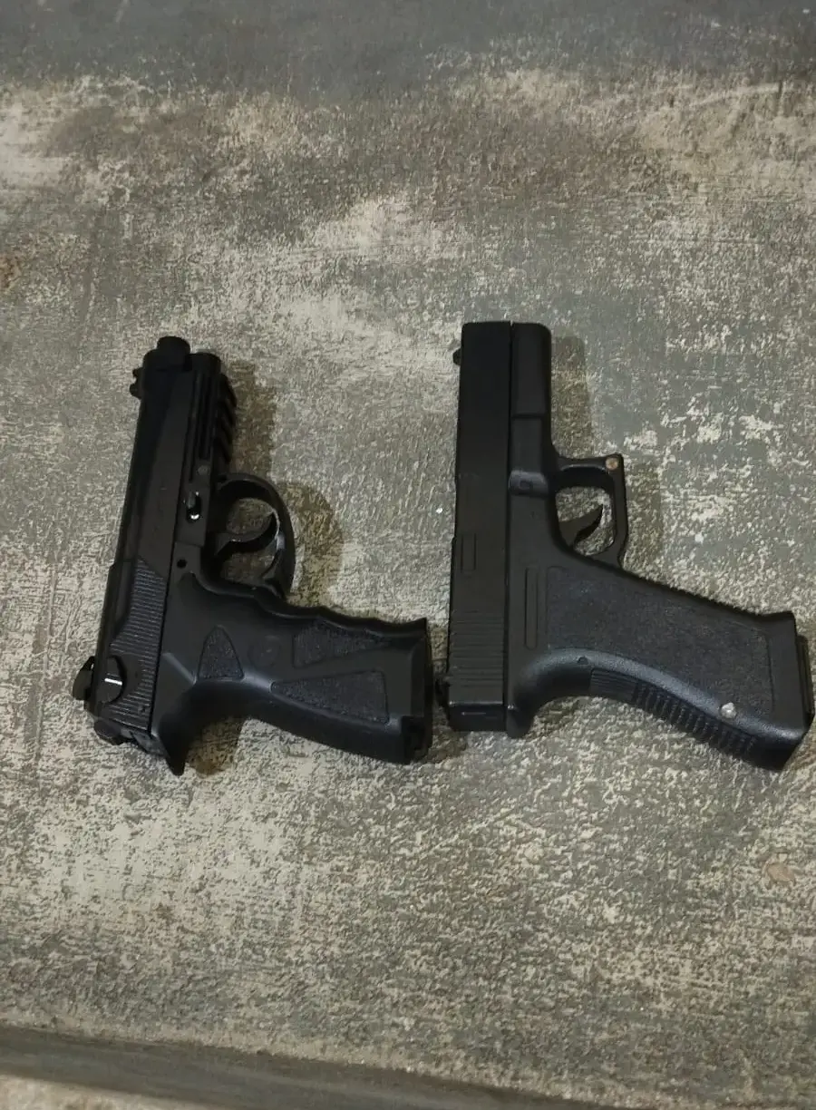 Durante a abordagem, os policiais encontraram as réplicas de armas de fogo com os dois. Eles relataram que pretendiam usar os simulacros para roubar motocicletas na estrada da Variante durante a noite e, posteriormente, praticar outros furtos.