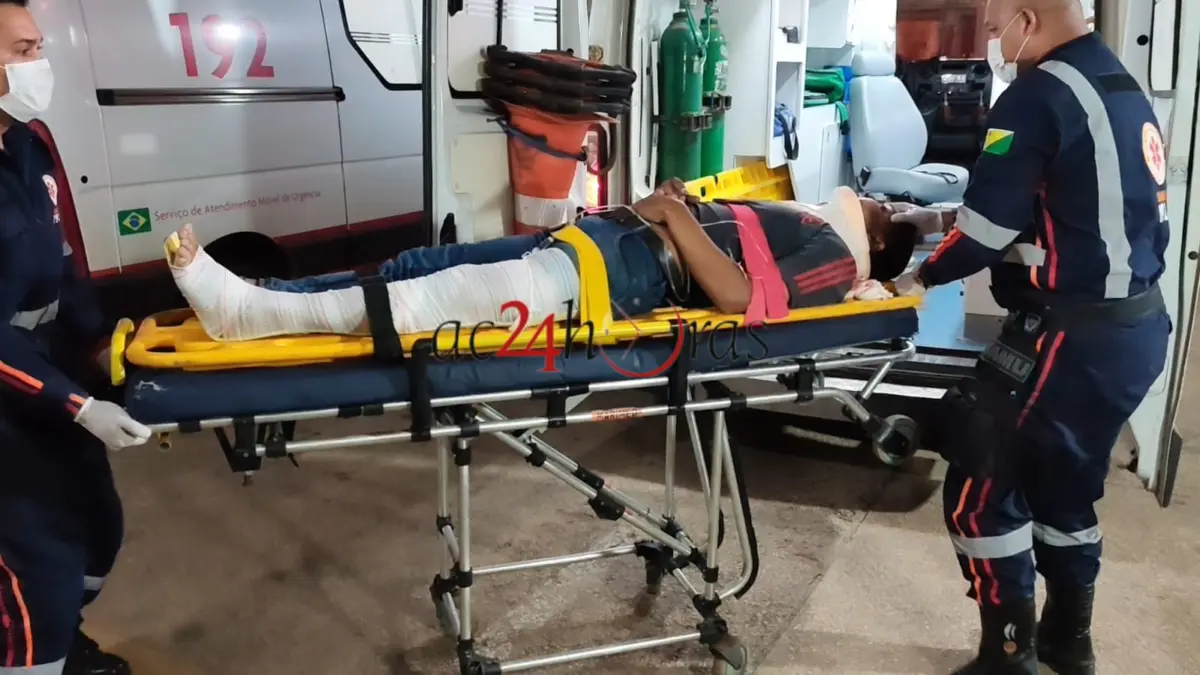 VEJA: Homem empina moto, colide contra muro e sofre múltiplas fraturas em Rio Branco