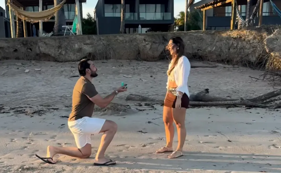 Na parte final, Ana Paula caminha pela areia em direção a Jarude, conforme orientação do fotógrafo. Ao se aproximar, ele retira a caixinha do bolso e se ajoelha. Visivelmente surpresa e emocionada, ela leva as mãos ao rosto, enquanto pessoas ao redor aplaudem e comemoram. Na tela, surge a pergunta: “Você aceita casar comigo?”. O vídeo termina com o casal se abraçando e se beijando na praia, ao som da música Say You Won’t Let Go, de James Arthur.