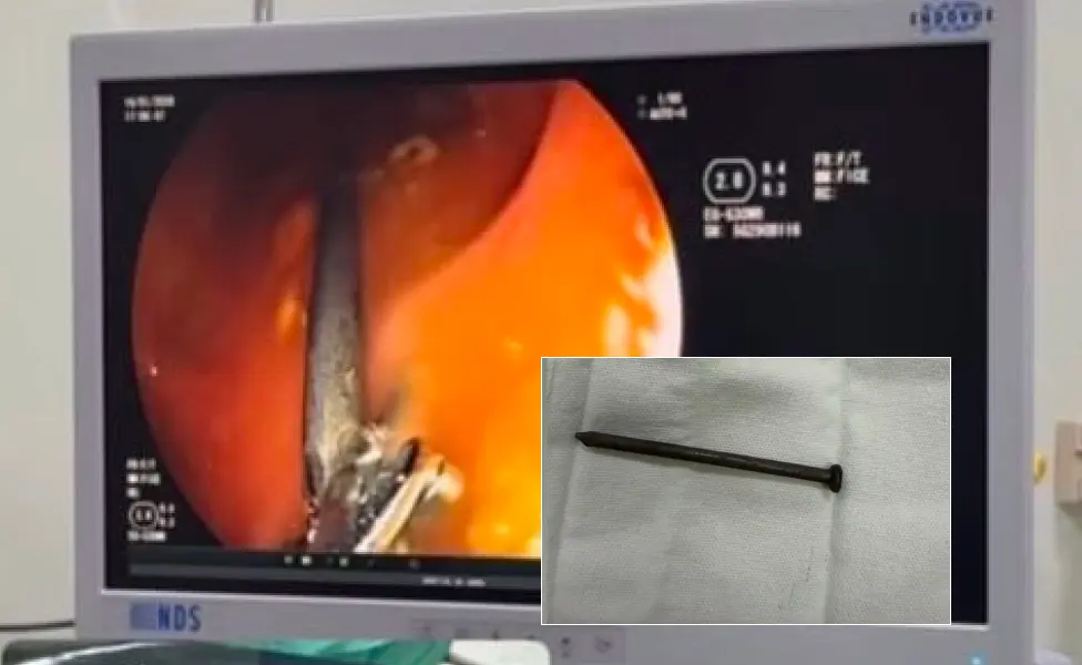 Por meio de uma colonoscopia realizada no Hospital do Juruá, na noite desta sexta-feira (16), o médico Marlon Holanda retirou um prego que estava alojado no intestino de um menino de 3 anos há oito dias. A criança passa bem.