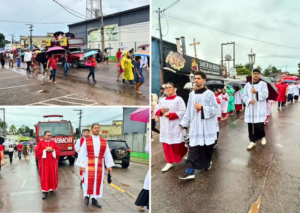 Entre os participantes estava a jovem católica Tayla Maria, de 14 anos, integrante da Paróquia São Pelegrino. Ela contou que costuma participar das celebrações mesmo em dias de chuva. “A gente vem sempre, mesmo quando chove, para receber a bênção”, disse. Segundo ela, a presença na procissão não estava relacionada ao pagamento de promessa, mas à devoção.