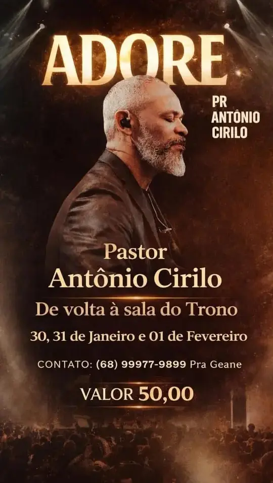 A capital acreana receberá, nos dias 30 e 31 de janeiro e 1º de fevereiro, o evento cristão “Adore – De volta à sala do Trono”, que contará com a presença do pastor e cantor Antônio Cirilo, referência nacional na música e na adoração cristã.