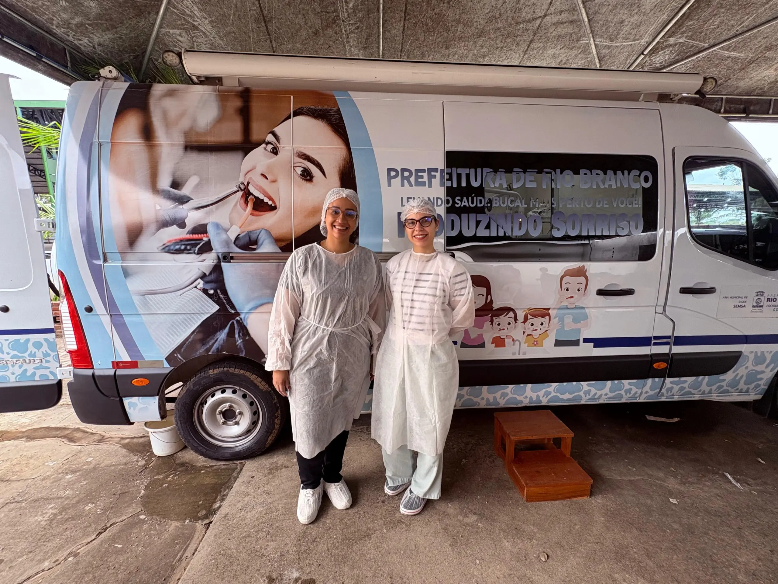 No Parque de Exposições, crianças e adultos recebem atendimento das vans odontológicas do programa Produzindo Sorrisos nesta sexta-feira (23). A ação, realizada pela Prefeitura de Rio Branco, por meio da Secretaria Municipal de Saúde, integra procedimentos como limpeza, orientações de higiene bucal, escovação supervisionada, profilaxia, aplicação de flúor, restaurações e extrações.