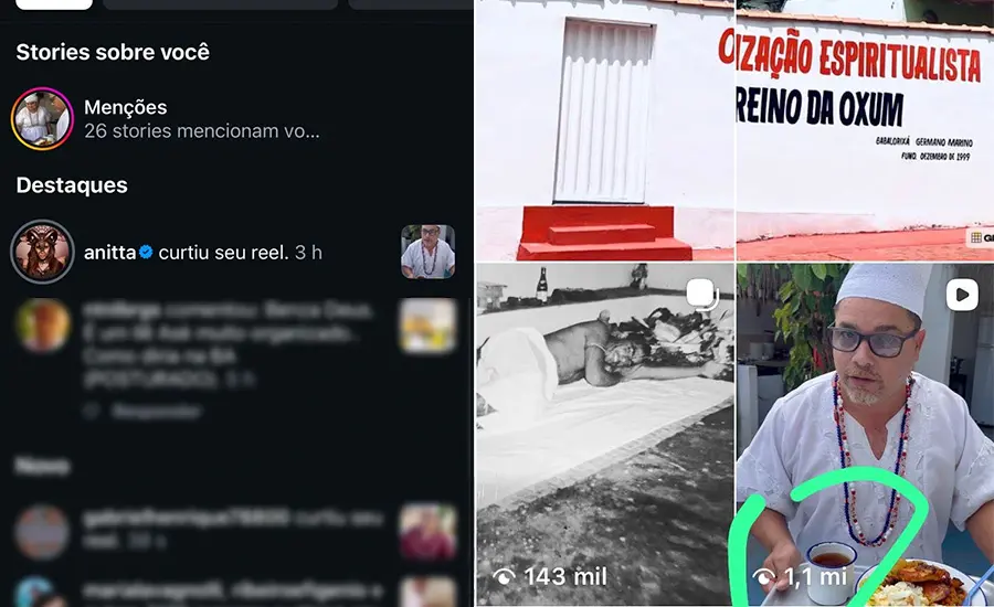 O perfil do pai de santo reúne mais de 48 mil seguidores e a publicação já alcançou mais de 1,1 milhão de visualizações, além de milhares de curtidas e compartilhamentos. O conteúdo repercutiu amplamente e chegou a artistas e influenciadores nacionais, reforçando o debate sobre tradição, espiritualidade e modernidade nas religiões de matriz africana.