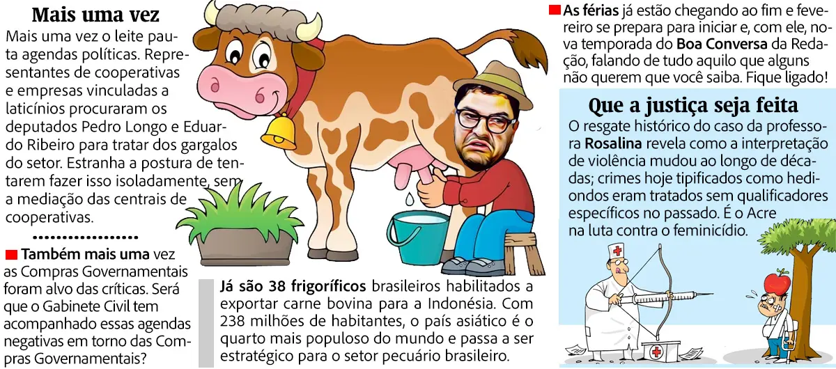 O Acre acompanha de perto o debate sobre suas exportações de gado. Daqui a alguns dias deve sair o resultado da missão indonésia que visitou frigoríficos acreanos. Fizeram vistorias técnicas, anotaram tudo e mais um pouco. Agora, é aguardar o resultado.