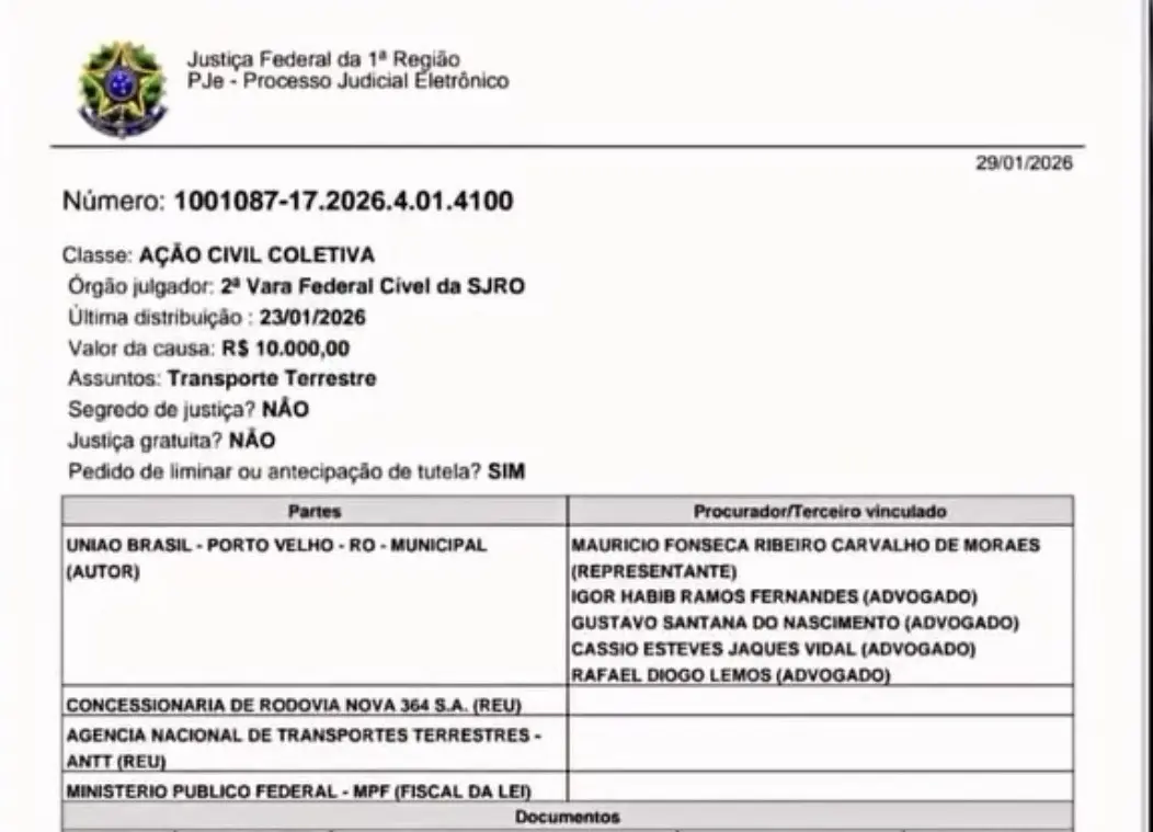 No processo, a Agência Nacional de Transportes Terrestres (ANTT) e a concessionária Nova 364 figuram como rés, enquanto o Ministério Público Federal (MPF) atua como fiscal da lei.