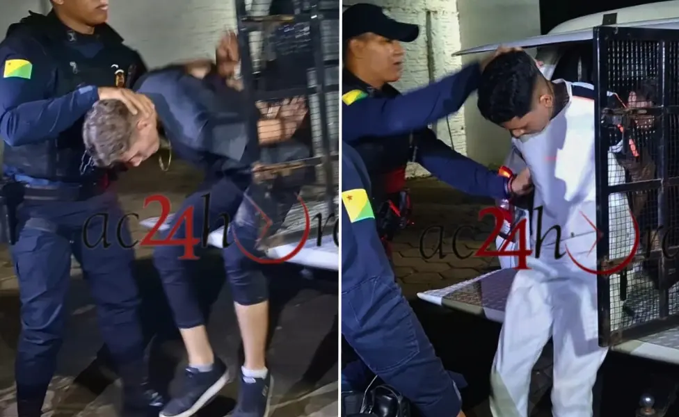 Paulo Victor Rodrigues Moreira e Lucas Vinicio Oliveira Souza, ambos de 19 anos, foram presos na noite desta sexta-feira (30) após assaltarem a Farmácia do Consumidor localizada na Avenida Sobral, no bairro da Pista, em Rio Branco.