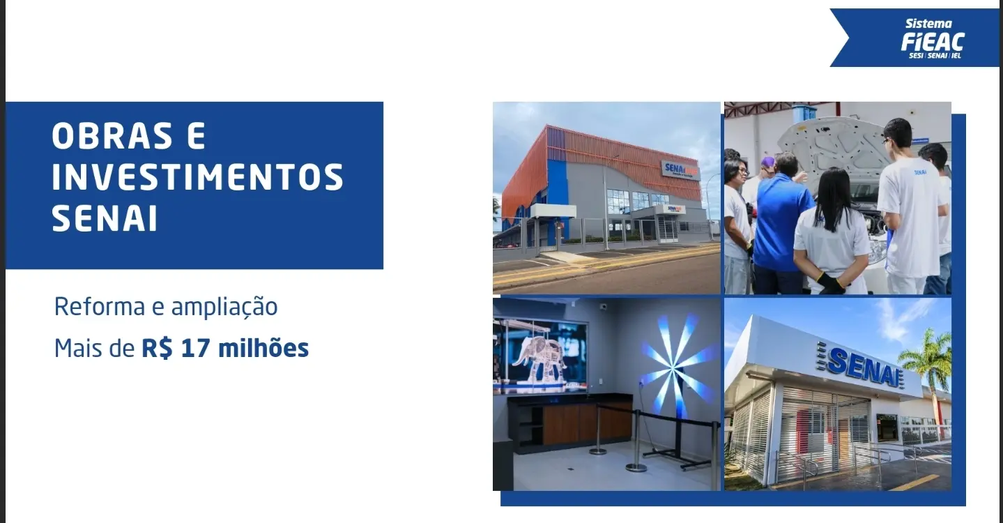 As obras integram um plano mais amplo de expansão e modernização do Sistema Indústria no Acre, que envolve Sesi, Senai e IEL. Para José Adriano, os investimentos refletem uma visão de futuro. “Estamos preparando o Senai para os próximos anos, com foco em tecnologia, qualificação profissional e conexão direta com as necessidades do mercado e da economia”, concluiu.