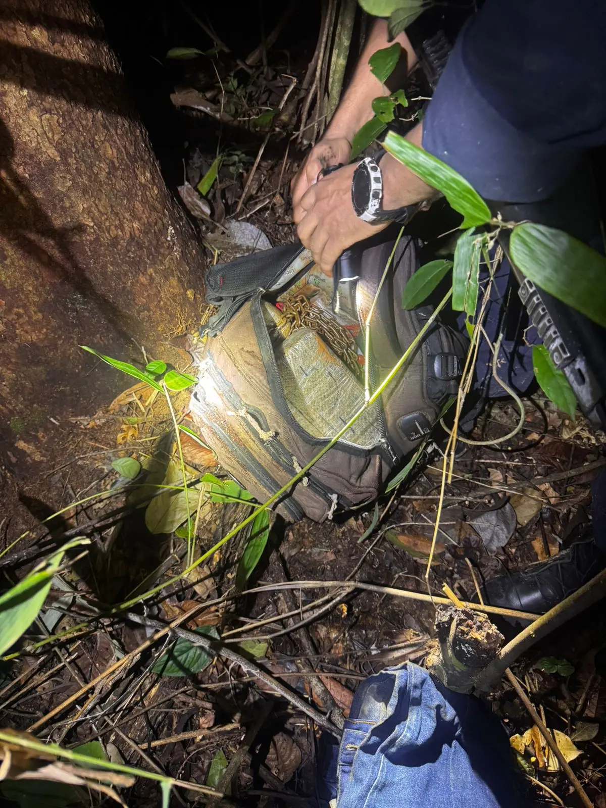 Durante buscas em uma área de mata próxima, os policiais localizaram duas mochilas contendo 34 barras de maconha. Diante do material apreendido, os abordados admitiram que realizavam o transporte da droga para uma terceira pessoa.
