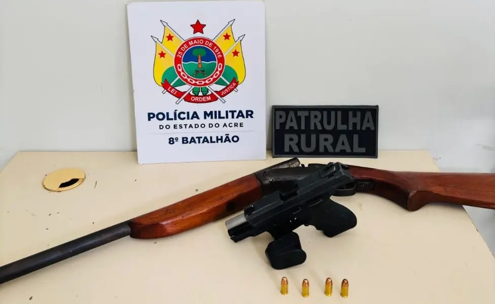 Policiais militares do 8° Batalhão aprenderam duas armas de fogo na zona rural de Sena Madureira, interior do Acre, nesta terça-feira, 03, após denúncia anônima.