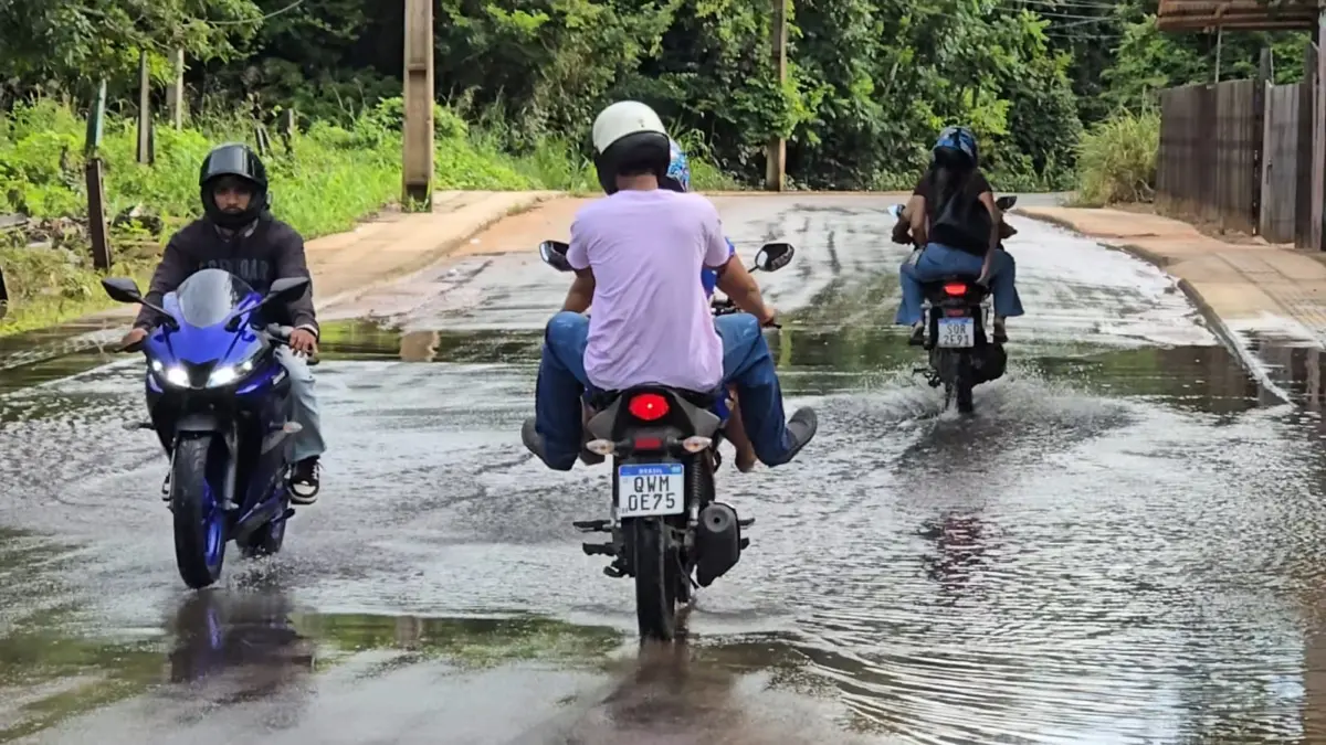 O videomaker do ac24horas, Kennedy Santos, fez um alerta direto aos moradores de Rio Branco ao mostrar na manhã desta terça-feira, 03, a situação da rua Baguari, no bairro Taquari, durante participação na edição do ac24horas Play. Mesmo com a redução do nível da água nas últimas horas, o trecho segue oferecendo risco devido ao acúmulo de água e à pista escorregadia.