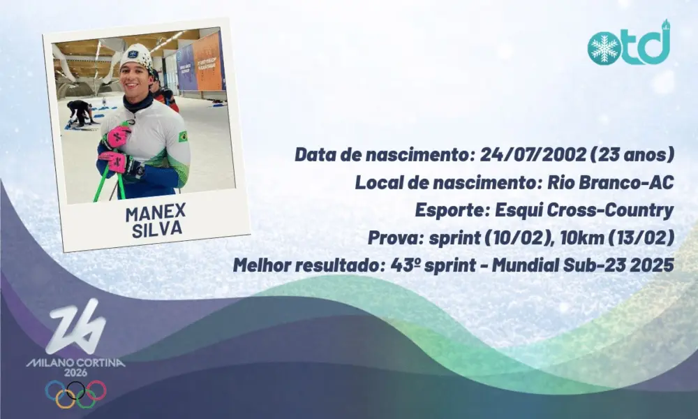 O acreano Manex Silva será o representante brasileiro no esqui cross-country nos Jogos Olímpicos de Inverno Milão-Cortina 2026. Aos 22 anos, o atleta nascido em Rio Branco disputará sua segunda Olimpíada de Inverno e chega à competição após um ciclo de quatro anos marcado por evolução técnica e maior experiência internacional.