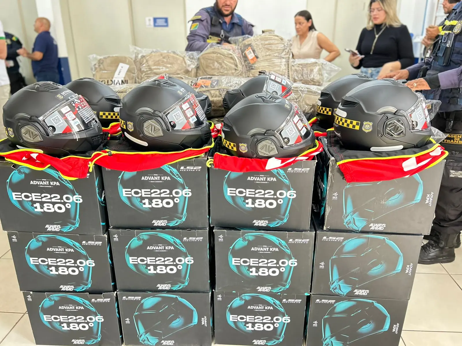 A entrega dos equipamentos acontece de forma simultânea em Rio Branco, Cruzeiro do Sul e Brasileia. Os kits incluem coturno, joelheira, cotoveleira, cinto, mochila, capacete e fardamento completo, que passarão a ser utilizados a partir da próxima segunda-feira, quando também está prevista a posse de novos agentes de trânsito que irão atuar na capital e no interior do estado.