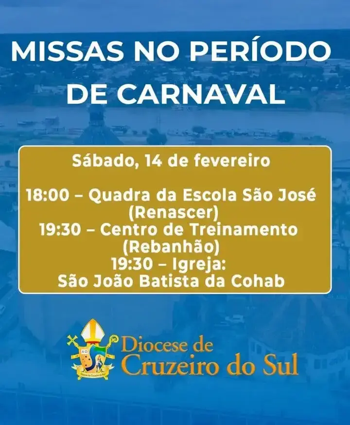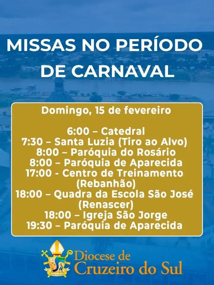 A prefeitura de Cruzeiro do Sul divulgou nota de esclarecimento na tarde desta quarta-feira, 11, citando que o novo horário do carnaval foi tratado com o bispo Dom Flávio Giovenale, em reunião na última segunda-feira (9).