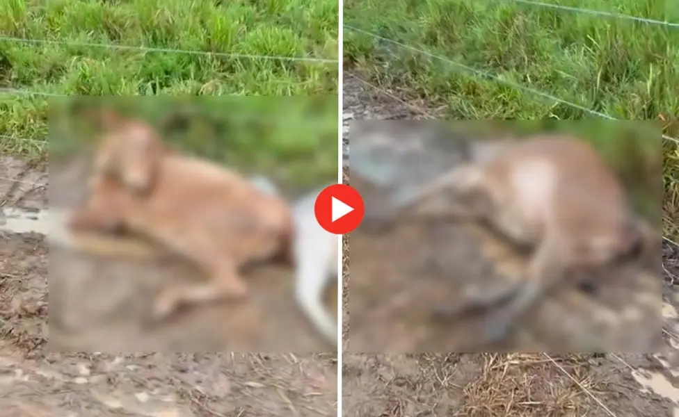 As imagens registram os animais mortos próximos a uma estaca danificada pela descarga elétrica.